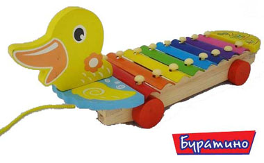 Симпатичная каталка-утка Ксилофон, интересна тем, что она на колесиках, ребенок может катать игрушку за шнурок. Яркие металлические пластины на ксилофоне, воспроизводят приятный мелодичный звук, это очень нравится малышам, поднимает настроение и улучшает эмоциональное состояние. Игра на ксилофоне способствует развитию у детей мелодического слуха, ритма и музыкальной памяти. Ребенок с Вашей помощью быстро освоит названия цветов, расширит свой словарный запас.