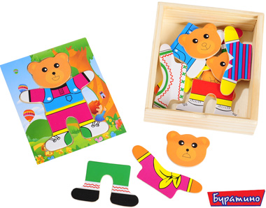 Увлекательная игра с пазлами-вкладышами. Задача ребенка - подобрать каждому персонажу игры свой наряд, сочетая детали одежды по цвету и стилю и учитывая размер. Игра развивает глазомер, логику и внимание.