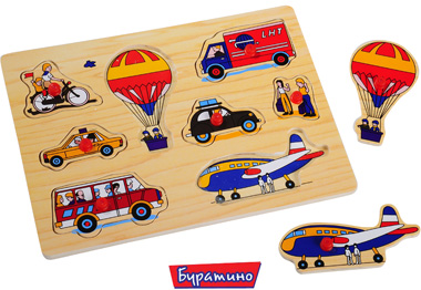 Игрушки, сделанные из натурального экологически чистого дерева. Рамка представляет собой дощечку с вырезанными в ней фигурками разнообразного транспорта. Ребенок должен найти место подходящее каждой фигурке.