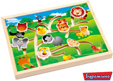 Лабиринт "Животные", изготовленный из дерева.