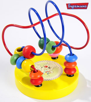 На основании лабиринта прикреплены цветные проволочки. На каждую проволоку нанизаны маленькие цветные фигурки из дерева, которые можно передвигать. В процессе игры развиваются крупная и мелкая моторика рук и пальчиков, улучшается зрительное и моторное восприятие предметов в пространстве. Игру можно применять как пособие для обучения малыша порядковому и количественному счету, а также для изучения основных цветов. Игра вырабатывает ловкость рук, сноровку и координацию движений, развивает мелкую моторику пальцев рук, а так же стимулирует развитие умственных способностей у детей.