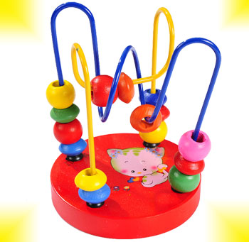 На основании лабиринта прикреплены цветные проволочки. На каждую проволоку нанизаны маленькие цветные фигурки из дерева, которые можно передвигать. В процессе игры развиваются крупная и мелкая моторика рук и пальчиков, улучшается зрительное и моторное восприятие предметов в пространстве. Игру можно применять как пособие для обучения малыша порядковому и количественному счету, а также для изучения основных цветов. Игра вырабатывает ловкость рук, сноровку и координацию движений, развивает мелкую моторику пальцев рук, а так же стимулирует развитие умственных способностей у детей.