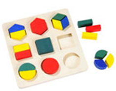 Задача: на деревянной доске из разноцветных половинок надо сложить геометрические фигуры.
