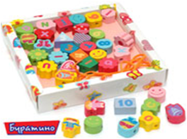 Ваш малыш сможет собрать из этих бусин, такие бусы, какие пожелает. На бусинах изображены: английский алфавит, цифры, различные фигурки в виде цветов, сердечек, рыбок и другие. В наборе также есть шнурок.