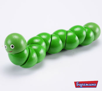 Состоит из двенадцати деревянных частей, образуя гибкое тельце, части деталей крутятся по свое оси. Развивает мелкую моторику рук.