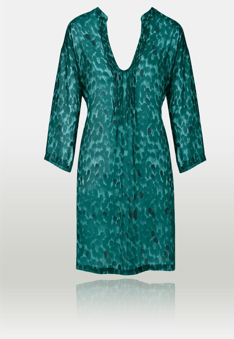 Модная,свободная туника из тонкого, немного полупрозрачного материала украшена интересным элегантным узором. U-образное декольте.Длина рукава 3/4. Дополните ваш пляжный гардероб этой воздушной туникой.Эта туника станет отличным дополнением у купальнику из серии Ve*nus Ele*gance.