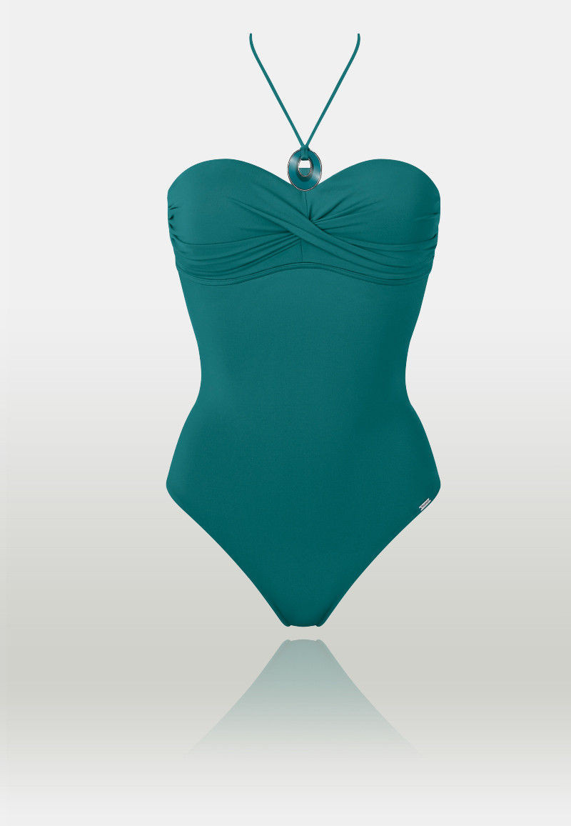 Элегантный слитный купальник , сделан из деликатного, быстросохнущего, мягкого материала, который корректирует фигуру.Чашечки деликатно уплотнённые(без косточек) они красиво поддерживают, приподнимают бюст и создают очаровательное декольте.Они украшены элегантными сборками,которые притягивают к себе внимание .В дополнение к набору есть шнурки с декоративными элементами, которые можно завязать на шее и традиционные бретельки, которые можно в любой момент снять.Купальник будет отлично держаться на месте, благодаря силиконовой полоске с внутренней стороны.От чашки D бретельки шире, и ещё лучше поддерживают пышный бюст.Декольте на спине выше, под лопатки.Оденьте этот купальник и плавайте в элегантном стиле!