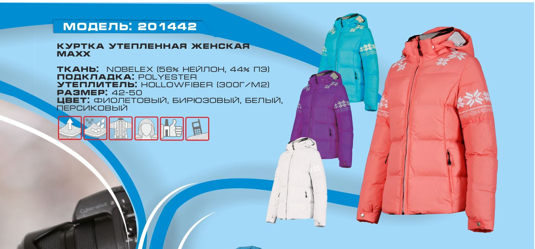 Материал: Nobelex (56% Нейлон, 44% ПЭ) Подкладка: Polyester Утеплитель: Hollofiber (300 Г/М2)