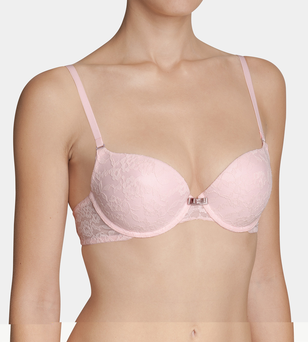 Бюстгальтер с уплотненными чашками имеет изысканную кружевную поверхность, не выделяющуюся под одеждой и придающую образу нежность, очарование и шарм. Отстегивающиеся бретели делают эту модель особенно функциональной, позволяя подбирать их расположение в зависимости от одеваемого наряда. Благодаря вкладышам Push-Up, декольте становится очень эффектным, а красивый цвет подчеркивает женственность и романтичность образа.