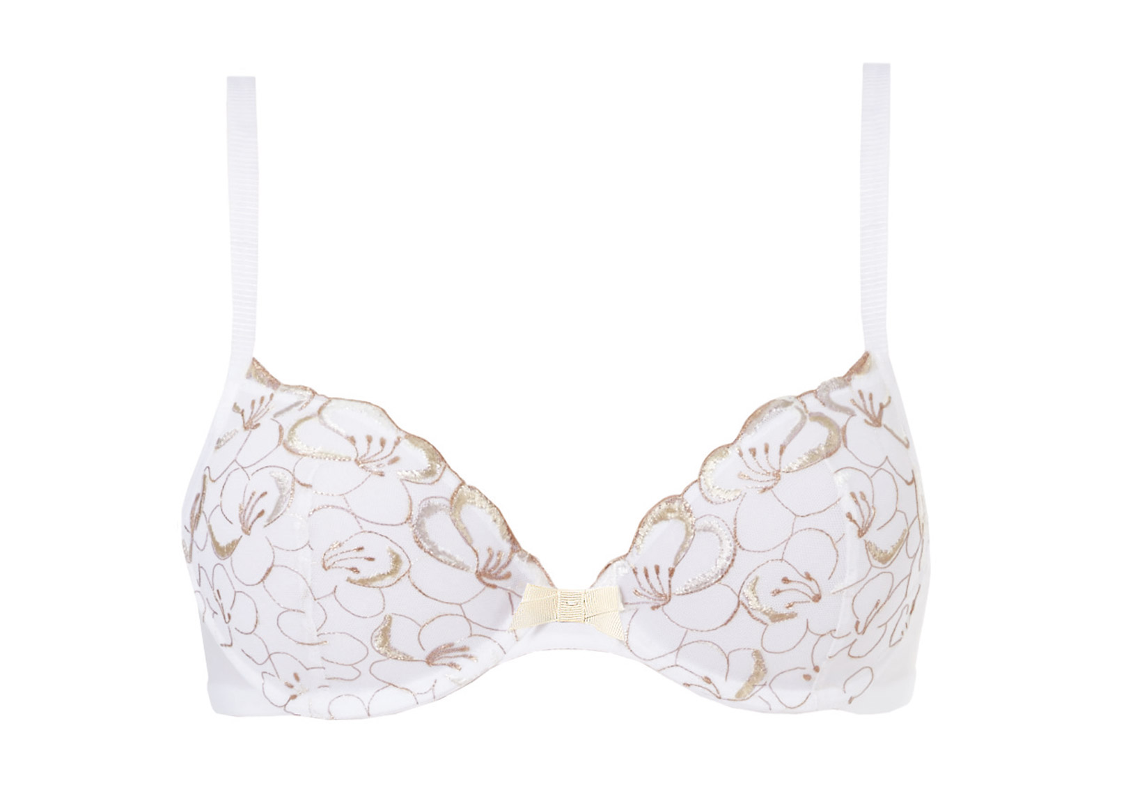 Бюстгальтер с уплотненной чашкой очень удобен в носке, благодаря отличной посадке и хорошему прилеганию чашек. Красивая контрастная вышивка по верху чашек создает необыкновенный, чарующий образ, подчеркивает его женственность и изысканность.