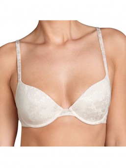 Бюстгальтер с эффектом Push-Up придает груди красивую форму. Благодаря гладкой поверхности чашек, модель прекрасно подходит в качестве белья на каждый день. Цветочный принт подчеркивает женственность и романтичность образа, а нежный цвет привносит особый шарм и неотразимость.