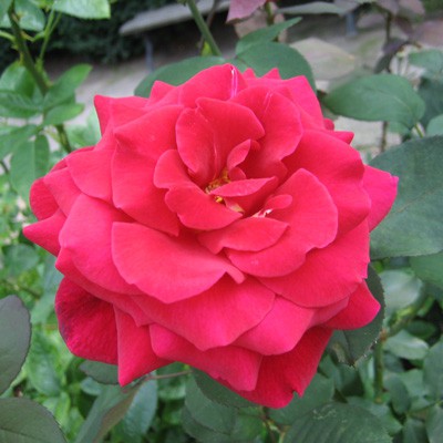 Бутоны заостренные, раскрываются в темно-красные, махрове (35 лепестков) цветки с очень плотными лепестками. Полностью распустившиеся цветки вначале чашевидные, затем плоские, очень ароматные. Листва, темно-зеленая, матовая, кожистая. Сорт очень сильнорослый (до 200 см).