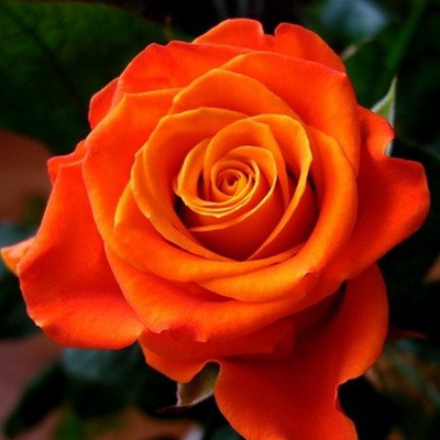 Выделяется богатой, яркой окраской цветков. Они махровые бокаловидные ярко-оранжево-алые с золотистой внешней стороной лепестков. Цветки выглядят более яркими, когда только начинают распускаться, но на стадии полного раскрытия насыщенная окраска также хорошо держится и практически не выгорает. Появляются по одному из элегантных бутонов на длинных прочных побегах, благодаря чему сорт идеален для срезки. Цветение обильное, начинается в середине лета и продолжается до самых заморозков. Куст прямостоячий, 90 см высотой, с большим количеством обильной блестящей, темно-зеленой листвы.