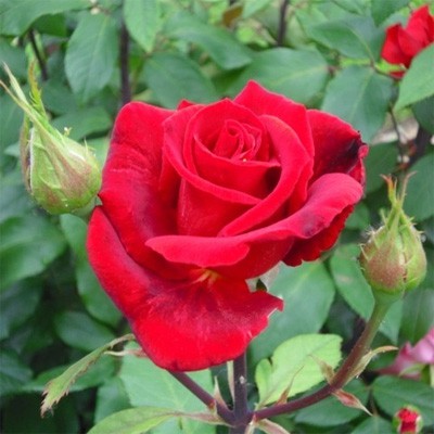 Цветки крупные (8-10 см), насыщенного красного цвета. Цветение обильное. Кусты ровные около 150 см высотой. Листья тёмно-зелёные, жёсткие.