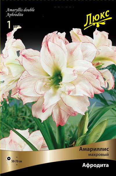 Афродита - высота растения 50-70см, цветки розово-белые, махровые.