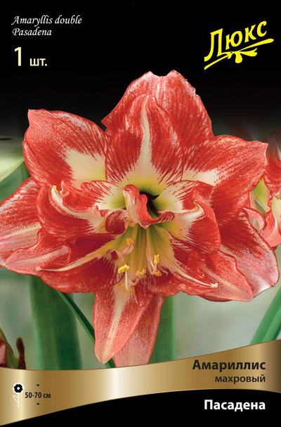 Пасадена - высота растения 50-70см, цветки красные с белой серединой, махровые.