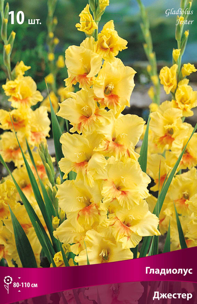 Джестер - высота растения 80-110см, желтый с красно-малиновым пятном, гофрированный.