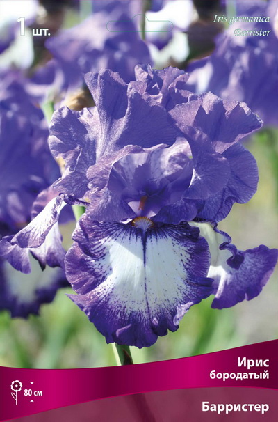 Барристер - высота растения 80см, ярко-синий, на нижних лепестках белое пятно в центре.
