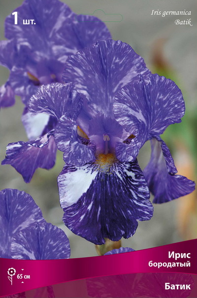Батик - высота растения 65см, цветки фиолетово-синие с неравномерным белым рисунком, словно обрызганные белой краской. Ранний.