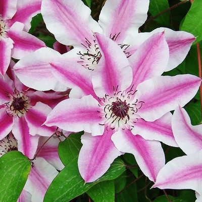 Лиана длиной до 1,5-2,5 метров. Цветки лилово-розовые, с тёмно-розовой полоской и светло-коричневыми тычинками. Цветение: май, июнь и повторно сентябрь. В местах солнечных цветки блекнут. Умеренно растущий. Цепляется за опоры листовыми черешками. Используется для посадки у всех садовых опор, решёток или среди кустарников. Особенно хорош для использования в полутенистых местах.