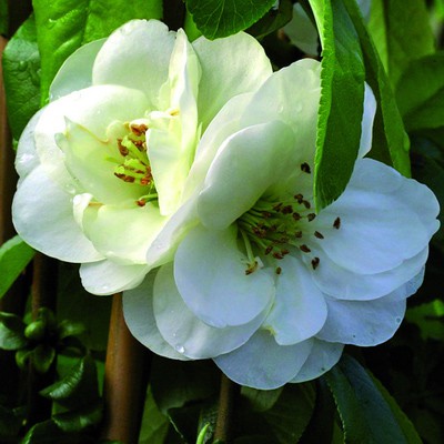 Раскидистый кустарник высотой от 1 до 2 м. Растет быстро. Долговечна. Листья узкие, ланцетные, светло-зеленые. Цветет в мае одновременно с распусканием листьев. Цветки белые, махровые, 3-4 см в диаметре, собраны в кисти по 2-6 шт. Плоды съедобные, созревают в начале октября. Хорошо переносит стрижку. Морозостойка, но в суровые зимы могут подмерзать концы побегов.