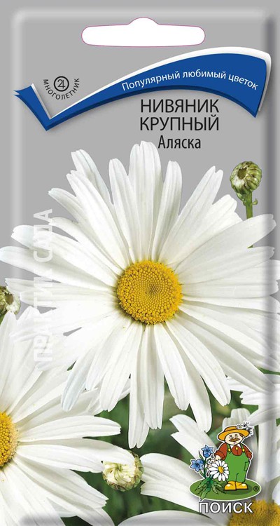 Популярное растение, которое известно под названием . Высота до 80 см. Крупные, в диаметре 6-10 см, цветки с белыми широкими лепестками и жёлтой серединой. Обильное цветение в июне-июле. Используются для групповых посадок в цветники, рядами на рабатки, а также для срезки в букеты. В воде стоят 8-10 дней.