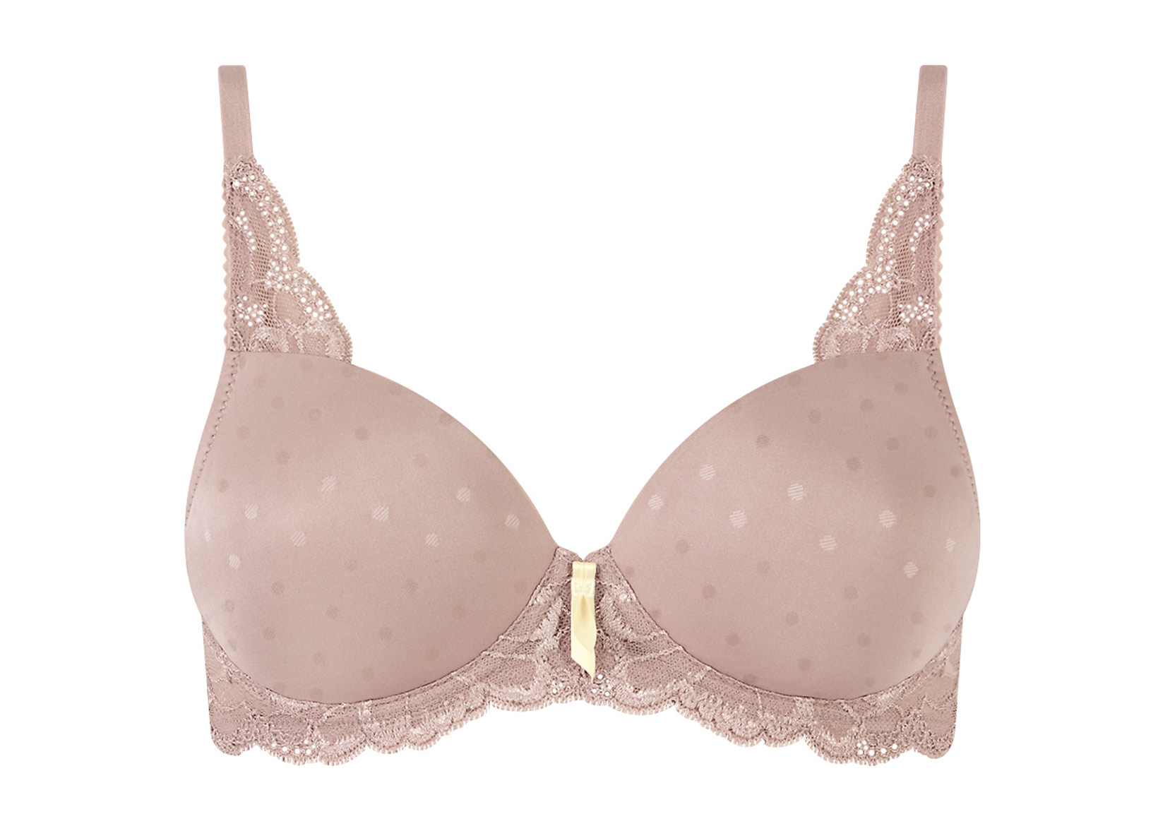Гладкий формованный бюстгальтер с оттенком гламура имеет особый дизайн и украшен нежным кружевом. Мягкая застежка подарит необыкновенный комфорт. Сочетайте эту модель с трусиками из серии Am*our Sp*otl*ight для завершения образа.