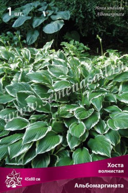 Хоста волнистая - вид садового происхождения, получен в Японии. Растение с продолговато-яйцевидными листьями до 20см длиной и до 13см шириной, по краю цельные, сильноволнистые и белой центральной частью или с перемежающимися белыми и зелеными участками у основания. Цветки воронковидно-колокольчатые, светло-фиолетовые, до 5см длиной. Цветет в июле-августе. Цветоносы до 80см высотой с несколькими маленькими листочками. Соцветие рыхлое.