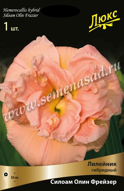 Силоам Олин Фрейзер - высота растения 50см, цветок лососево-розовый, махровый. Цветение июнь-июль.