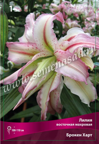 Брокен Харт- высота растения 100-110см, цветок белый с розовыми краями, крупный.