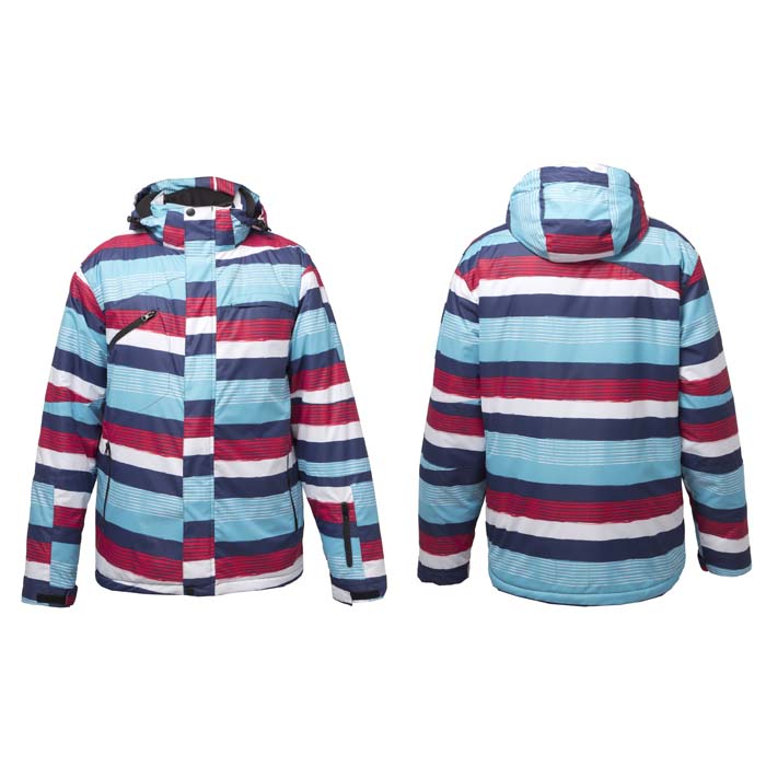 Куртка для мальчика на зиму для активного спорта и отдыха из плотной курточной ткани с водоотталкивающей пропиткой. Наполнитель -холлофайбер с плотность 100 гр м2. Цвет темно синий-голубой-красный принт .Прямой силуэт ниже линии бедра .Воротник высокий с застежкой на кнопки , внутренняя часть утеплена флисом . Низ рукава обработан манжетом , который регулируется лентой велькро (липучка),вставлен трикотажный манжет с фиксацией для большого пальца, на правом рукаве прорезной дополнительный карман на молнии . Куртка со съемным капюшоном. В капюшон продета регулируемая резинка с фиксаторами .Высота капюшона регулируется лентой велькро(липучка). Застёжка полочек на молнию с внешней и дополнительной внутренней ветрозащитной планкой- пластроном с лентой велькро(липучка). На полочке два прорезных боковых кармана на молнии в рельефах и один верхний дополнительный на левой полочке . По низу куртки проложена регулируемая резинка с фиксаторами . Подкладка на спинке выполнена из ткани с мембранной прокладкой, что позволяет сохранять тепло и воздухообмен внутри куртки. На подкладке к ветрозащитной планке по линии талии пришиты паты на кнопках для пристегивания брюк к куртке, так-же на этой планке пришита специальная резинка для плотного прилегания куртки к брюкам . На подкладке полочек внутренние дополнительные карманы на молнии.