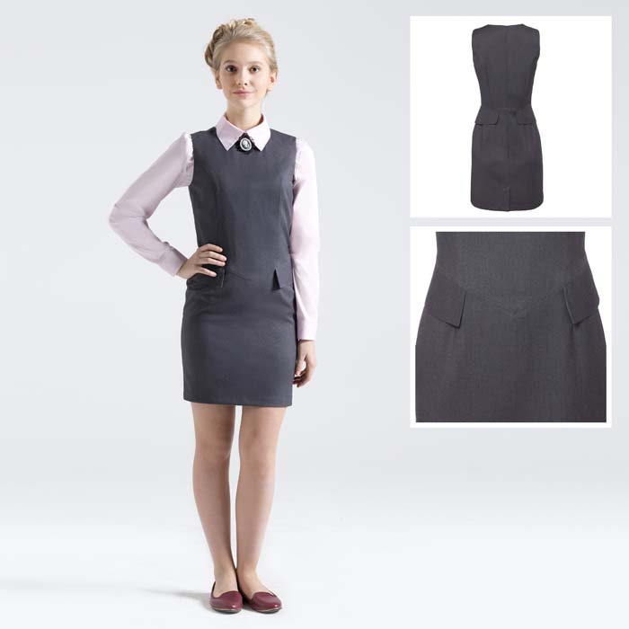 Сарафан для девочки из текстиля темно-серого цвета .Длина плюс 7см до линии колена.Силуэт прилегающий.Застежка сзади на молнии.