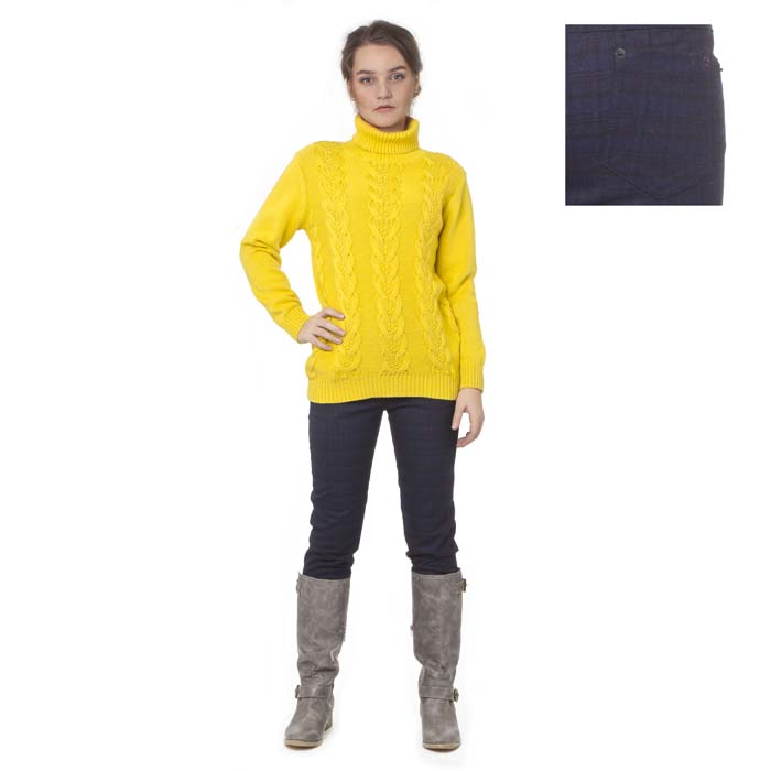 Брюки для девочки из текстиля в синюю/чёрную крупную клетку. Силуэт SLIM. Посадка стандартная. В пояс продета регулируемая резинка.