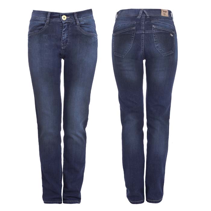 Джинсы для девочки тёмно-синего цвета. На передних половинках боковые карманы и часовой. На задних половинках кокетки и два накладных кармана. На заднем правом кармане вышивка