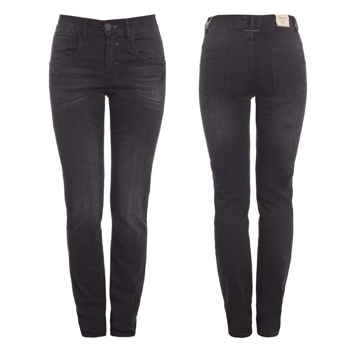 Джинсы для девочки чёрного цвета. На передних половинках боковые карманы и часовой. На задних половинках кокетки и два накладных кармана.