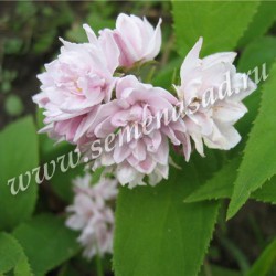 Пинк Пом-Пом - кустарник до 200 см высотой, с густой кроной. Листья темно-зеленые, шершавые. Цветет обильно в июне-июле ярко-розовыми, махровыми цветками.