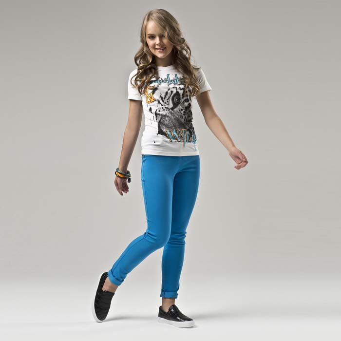Футболка для девочки из трикотажной кулирки сливочного цвета. Силуэт SLIM. Длина стандартная. Принт выполнен экокрасками
