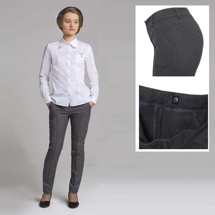 Брюки для девочки из ткани темно-серого цвета,утепленные.Силуэт REGULAR.Посадка стандартная.На ПП застёжка молния.На ПП два боковых кармана .