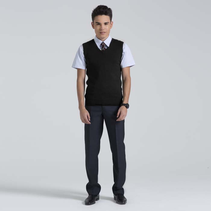 Жилет унисекс из вязанного трикотажа чёрного цвета. "У" образный вырез горловины.