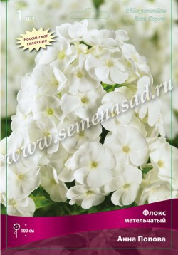Анна Попова - высота растения 100см, цветок белый с чуть желтоватым оттенком в зеве. Лепестки плотной фактуры. Соцветие округло-коническое, среднего размера, плотное. Куст компактный, прочный, разрастается довольно медленно. Лист темно-зеленый,плотный. Зимостойкий, устойчивый к грибковым заболеваниям сорт. Один из лучших белых флоксов.