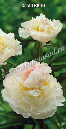 Блаш Квин- высота растения 90см, махровый,многоцветный:снаружи бело-кремовый,внутри с желтым отсветом, центр при развитии бледно-розовый,стебли прочные, ранний.