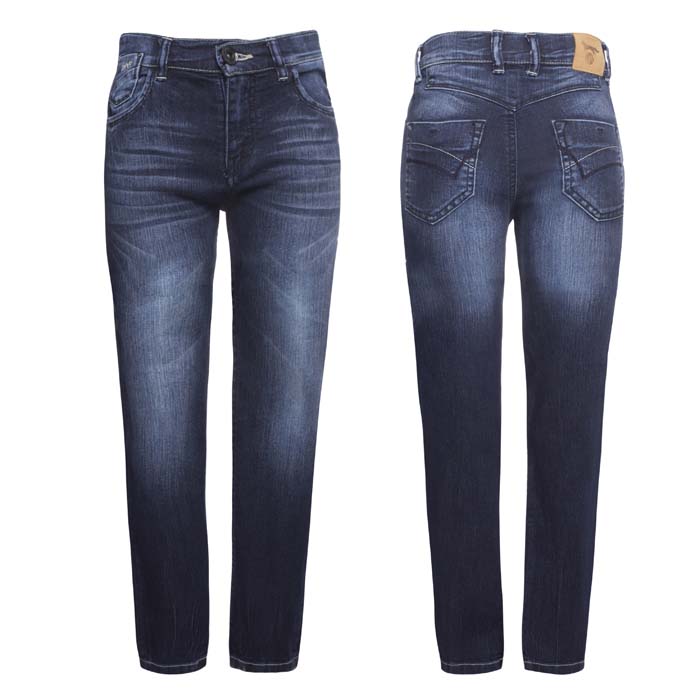 Джинсы для девочки тёмно-синего цвета. Силуэт SLIM. Посадка стандартная. На передних половинках боковые карманы и часовой. На задних половинках кокетки и два накладных кармана.