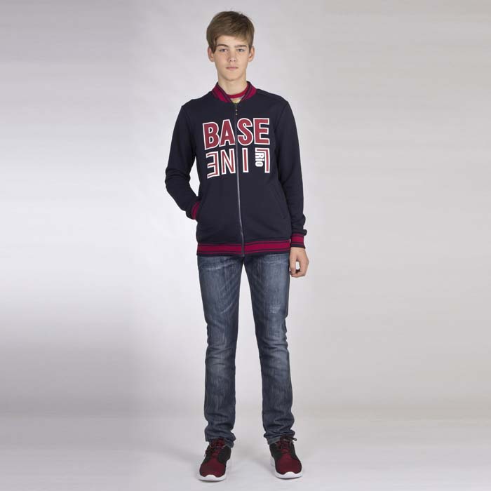 Толстовка для мальчика из футора синего цвета. Длина стандартная. Силуэт REGULAR. Застёжка на молнию. На полочке боковые карманы с листочкой. Притачной пояс по низу, манжеты и воторник стойка из отделочного трикотажного материала. Принт полочка выполнен экокрасками