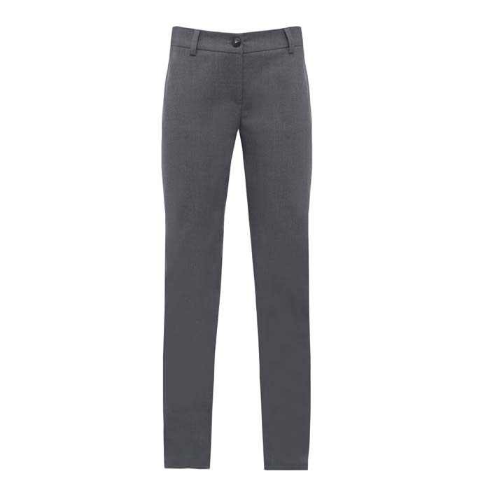 Брюки для девочки из текстиля серого цвета. Прямого силуэта. На передней половинке застёжка молния. В пояс проложена резинка.