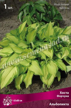Хоста Форчуна - средне крупная, быстро растущая хоста. Листья сердцевидные или сердцевидно-яйцевидные, снизу с восковым налетом, длиной до 13см, шириной до 9см. Цветки лиловые. Цветоносы до 50см высотой. Цветение июль-август.