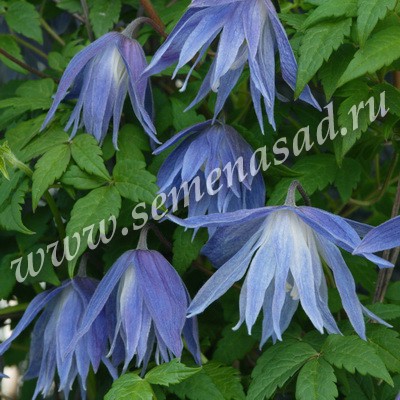 Цветки красивые, светло-голубые, полумахровые. Обильно цветёт ранней весной в апреле-мае на прошлогодних побегах, но немного цветов появляется также летом. Летом и осенью украшен декоративными соплодиями. Высота растения 2-3 м. Очень устойчив и малотребователен к условиям выращивания. Цветёт на прошлогодних побегах, поэтому не требует обрезки, если не мешает соседним растениям.