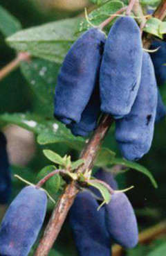 Плоды: ягоды вкусные голубовато-синие, удлиненно-овальной формы с немного вытянутой верхушкой, длиной 2 см, масса 0,7 г не осыпаются урожайность 0,5 кг с куста вкус сладкий, мякоть нежная