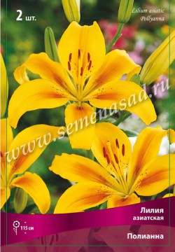 Полианна - высота растения 115см, цветок желтый, с оранжевыми мазками в центре, коричневый крап.