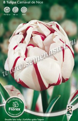 Карнавал де Нис - белый цветок с красными язычками пламени. Декоративные изумрудно-зеленые с кремовым кантом листья и яркие, словно кружащиеся в вальсе бокалы цветка сделают этот сорт безусловным фаворитом на Вашей клумбе. Высота растения 45 см.