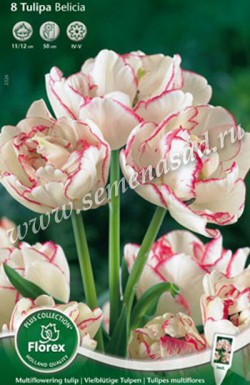 Белиция - волшебная окраска нежных кремовых лепестков с тонким розовым кантом и легкой штриховкой по краю. Лепестков так много, что они расходятся в стороны, придавая цветам сходство с пушистыми снежками. Очаровательный сорт! Высота 50 см.